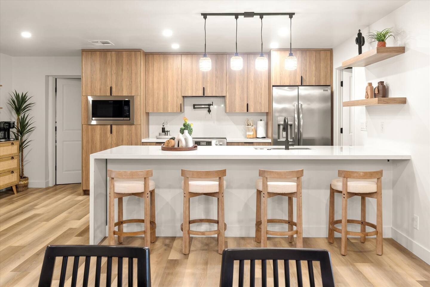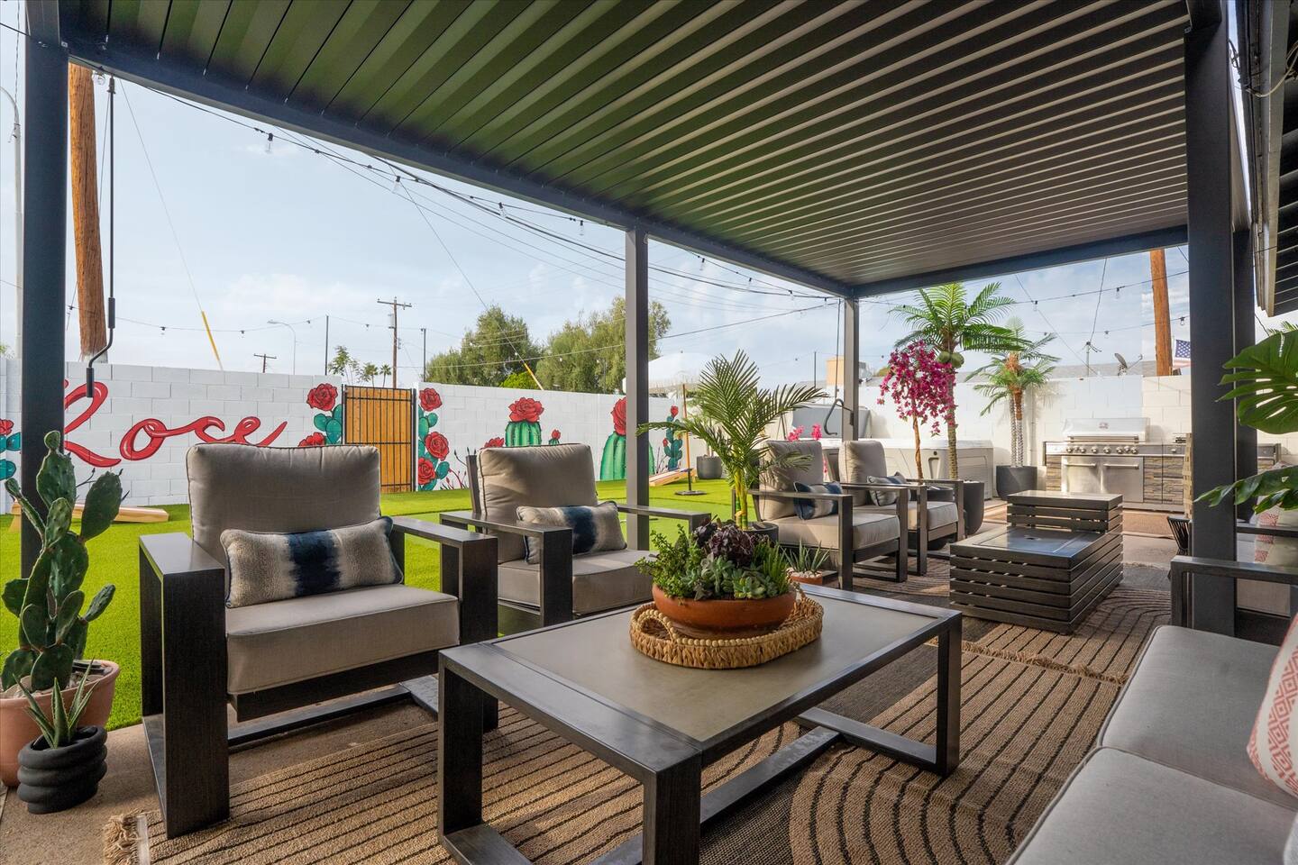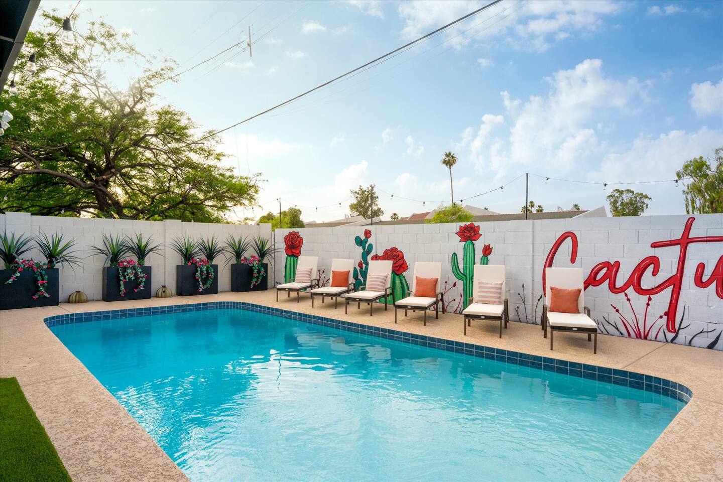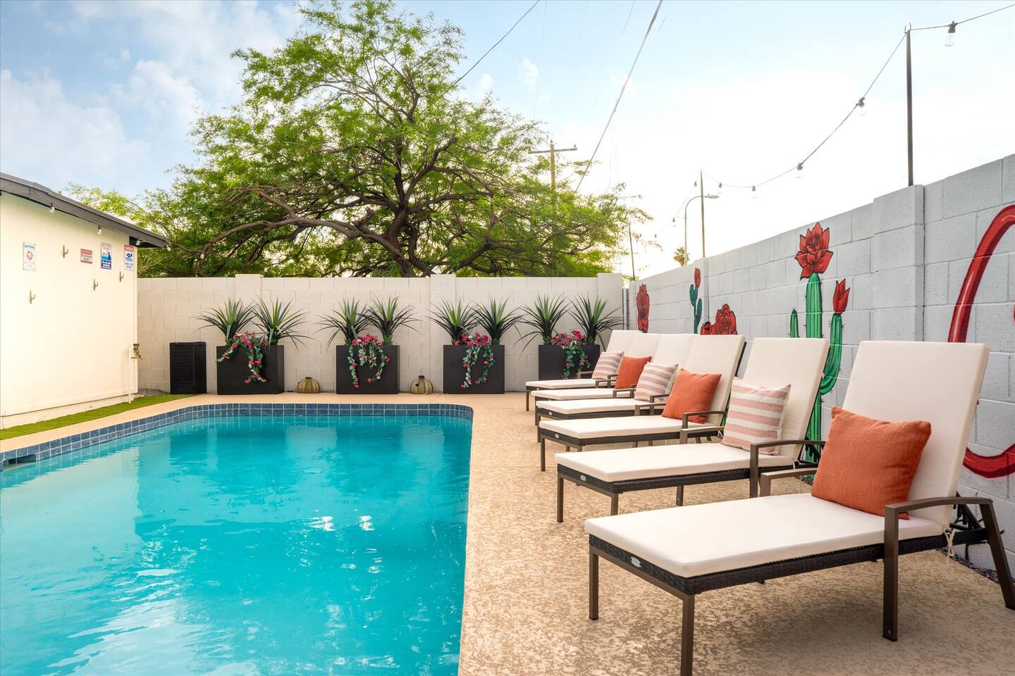 - Relax in a backyard oasis with a pool, hot tub, and built-in grill setup. - Enjoy mini-golf, Corn Hole, and a fire pit in the family-friendly backyard. - Unwind in stylish rooms with modern decor, TVs, and room-darkening curtains. - Minutes from ASU, local attractions, dining, and shopping in vibrant Tempe. - Reserve your desert retreat now for a blend of adventure and relaxation!