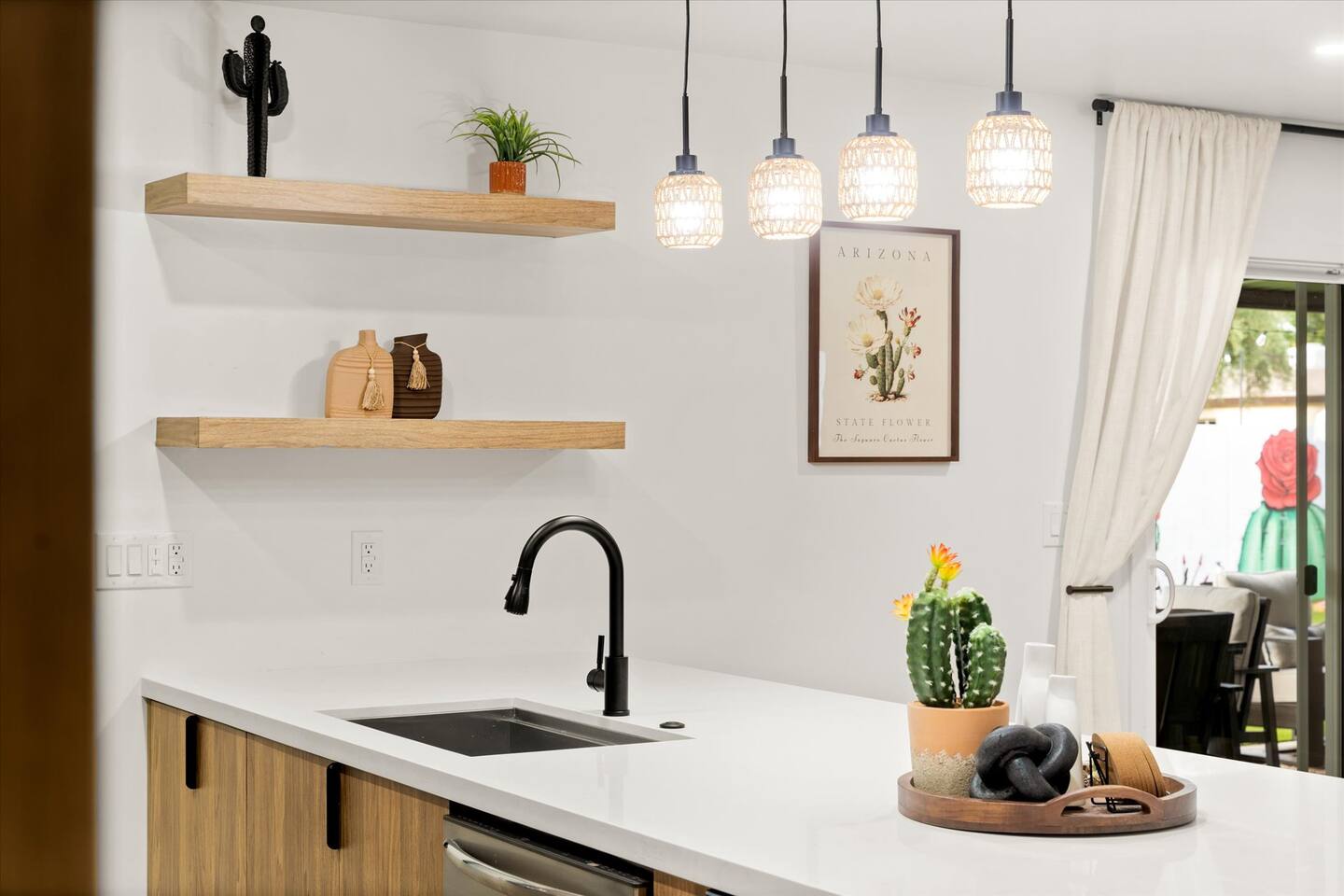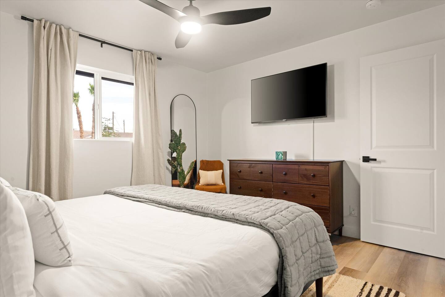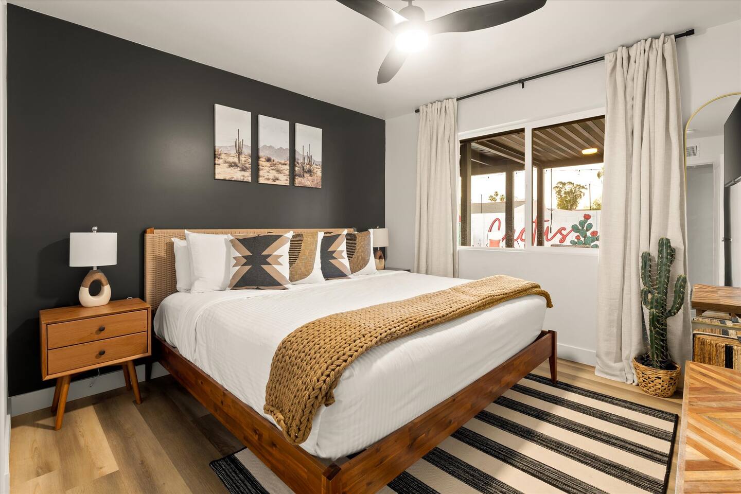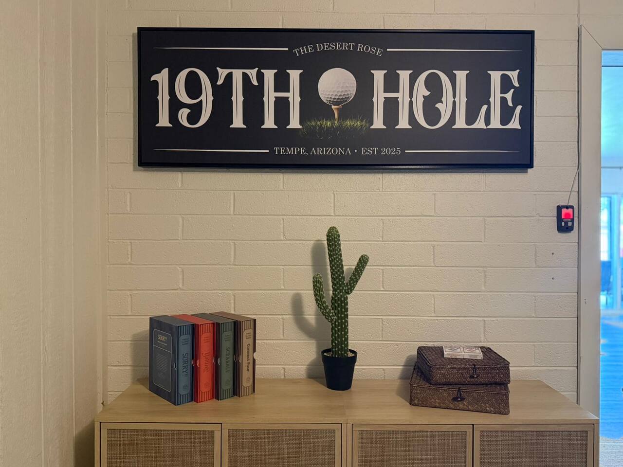 Welcome to Cactus Rose, your dream desert escape in the heart of Tempe, AZ! 🌵 This thoughtfully designed and professionally maintained 5-bedroom home (plus bunk room!) offers the ideal mix of comfort, space, and amenities. Perfect for families, groups, or business travelers. 🛏 Bedrooms: All five bedrooms are styled with modern touches, smart TVs, dressers, and room darkening curtains. • Primary Bedroom: King bed, en suite bathroom, TV, dresser • Bedroom 2: King bed, TV, dresser • Bedroom 3: King bed, TV, dresser • Bedroom 4: King bed, TV, dresser • Bedroom 5: Queen bed, en suite bathroom, TV, dresser — with a secret bunk room tucked into a converted walk-in closet (2 twin beds, perfect for kids!) *We also have 2 air mattresses and bedding available upon request. • Game room: Enjoy a game of darts or poker around our poker table 🍽 Kitchen & Dining: The fully equipped kitchen features stainless steel appliances, a Keurig and drip coffee maker, toaster, and all the cookware and utensils you need. Whether you're prepping a family dinner or serving takeout, this space is ready. Enjoy meals indoors at the large dining table, or head outside to enjoy our gorgeous Arizona evenings. 🧼 Clean & Comfortable: • Professionally cleaned before every stay • Hotel-quality linen service for bedding and towels • Large washer & dryer available for guest use • Central A/C, high-speed WiFi, and a dedicated private workspace 🌵 Outdoor Living: Step into a private backyard oasis built for connection and play! • Private pool and hot tub • Enjoy backyard games! Mini golf on our putting green and Corn Hole with bean bags • Built-in grill • Fire pit, and ample lounge seating • Surrounded by desert landscaping and natural light throughout the home *Please note: Our pool is not heated. It's most comfortable for swimming from May through October. During the cooler months, while the water may be chilly, most days are still perfect for relaxing in the sun on the poolside loungers. 📍 Location Highlights: • 10 minutes to Phoenix Sky Harbor Airport • 10 minutes to Sloan Park (Cubs Spring Training) • 5 minutes to ASU & Downtown Tempe • 15 minutes to Old Town Scottsdale • 20 minutes to Downtown Phoenix HOUSE RULES: 1. Absolutely no parties. We want to be extremely respectful of our neighbors. You will be asked to leave without any refund if there are any reports of noise or partying. 2. No more than 14 people are allowed in the home at any time 3. Quiet hours are 10pm-8am 4. No tape, thumbtacks, or hanging decorations on the walls. 5. We have a zero tolerance NO SMOKING policy. Smoking of all kinds not permitted inside the house. If any evidence of smoking is found, we charge a minimum $500 fee PLUS the cost of restoring the home to its original smoke free condition. 6. NO dogs or pets of any kind. We love pets, but to maintain our high cleaning standards and accommodate guests with allergies, we have a strict no-pets policy. 7. Pool Safety: The pool is not fenced. There is no lifeguard on duty. Swim at your own risk and consider this when deciding if the home is a good fit for your group. By booking, you agree to follow these house rules and respect our home, neighbors, and community. Tempe STR License #A-001198