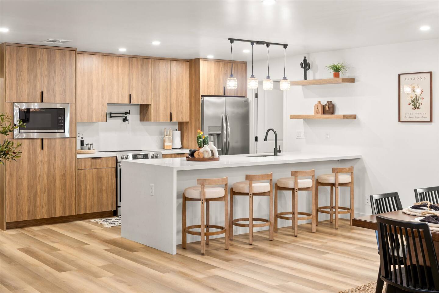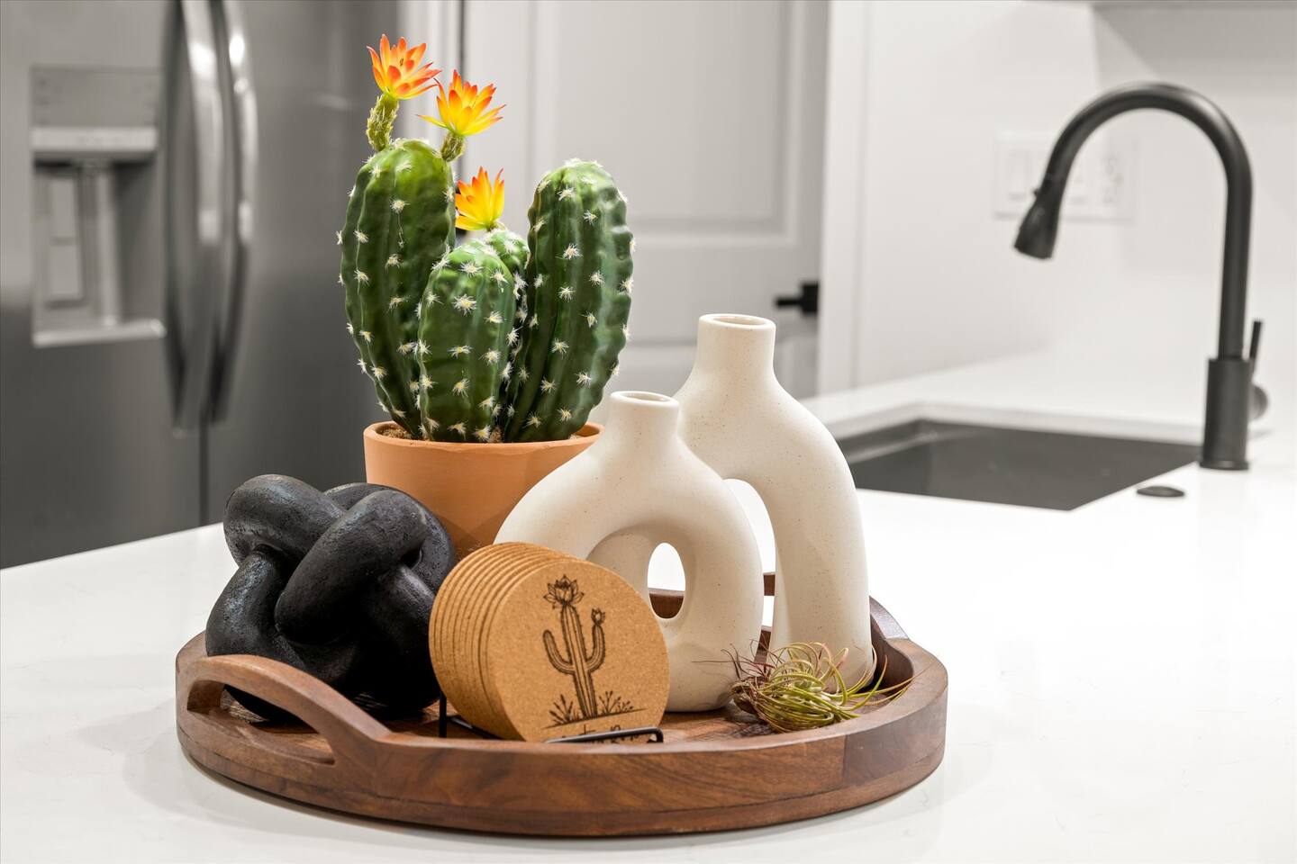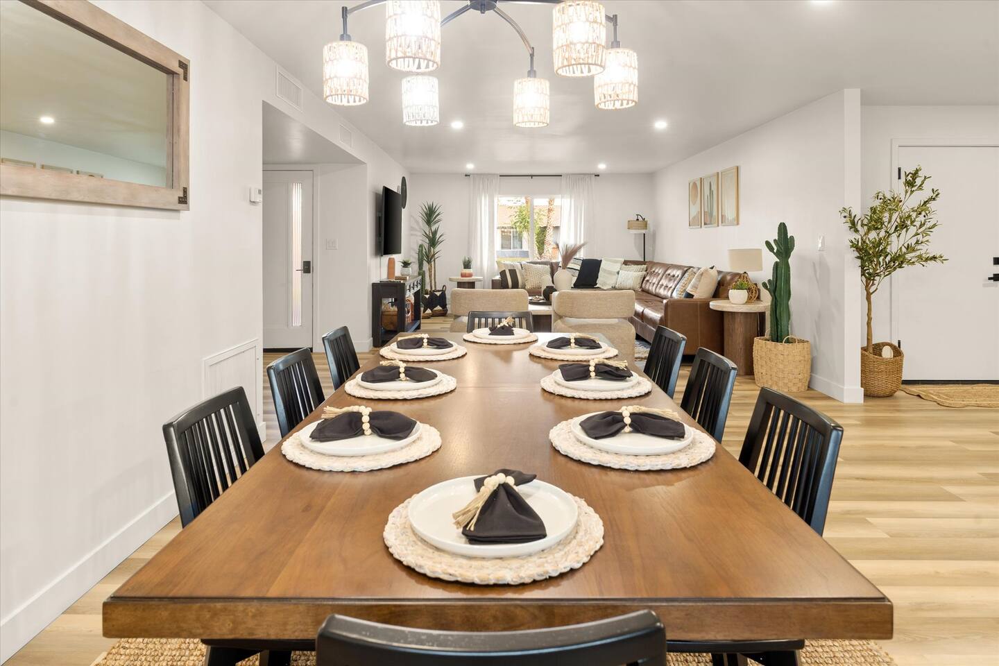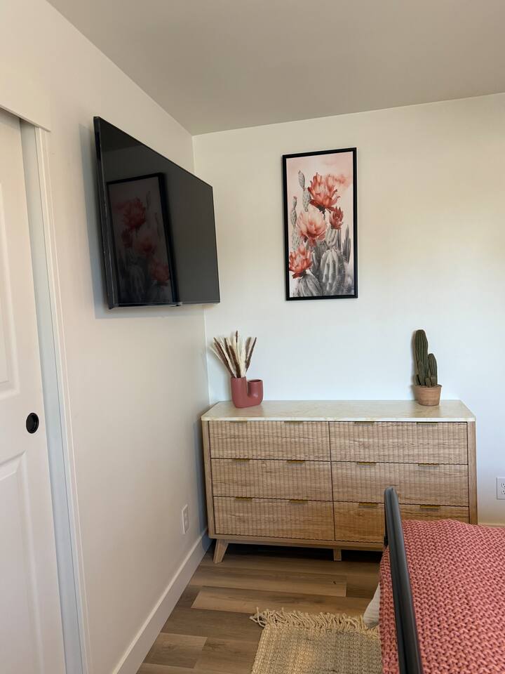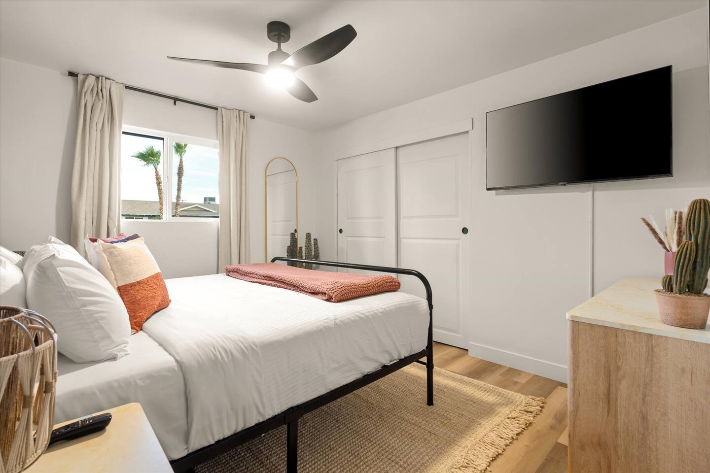 Welcome to Cactus Rose, your dream desert escape in the heart of Tempe, AZ! 🌵 This thoughtfully designed and professionally maintained 5-bedroom home (plus bunk room!) offers the ideal mix of comfort, space, and amenities. Perfect for families, groups, or business travelers. 🛏 Bedrooms: All five bedrooms are styled with modern touches, smart TVs, dressers, and room darkening curtains. • Primary Bedroom: King bed, en suite bathroom, TV, dresser • Bedroom 2: King bed, TV, dresser • Bedroom 3: King bed, TV, dresser • Bedroom 4: King bed, TV, dresser • Bedroom 5: Queen bed, en suite bathroom, TV, dresser — with a secret bunk room tucked into a converted walk-in closet (2 twin beds, perfect for kids!) *We also have 2 air mattresses and bedding available upon request. • Game room: Enjoy a game of darts or poker around our poker table 🍽 Kitchen & Dining: The fully equipped kitchen features stainless steel appliances, a Keurig and drip coffee maker, toaster, and all the cookware and utensils you need. Whether you're prepping a family dinner or serving takeout, this space is ready. Enjoy meals indoors at the large dining table, or head outside to enjoy our gorgeous Arizona evenings. 🧼 Clean & Comfortable: • Professionally cleaned before every stay • Hotel-quality linen service for bedding and towels • Large washer & dryer available for guest use • Central A/C, high-speed WiFi, and a dedicated private workspace 🌵 Outdoor Living: Step into a private backyard oasis built for connection and play! • Private pool and hot tub • Enjoy backyard games! Mini golf on our putting green and Corn Hole with bean bags • Built-in grill • Fire pit, and ample lounge seating • Surrounded by desert landscaping and natural light throughout the home *Please note: Our pool is not heated. It's most comfortable for swimming from May through October. During the cooler months, while the water may be chilly, most days are still perfect for relaxing in the sun on the poolside loungers. 📍 Location Highlights: • 10 minutes to Phoenix Sky Harbor Airport • 10 minutes to Sloan Park (Cubs Spring Training) • 5 minutes to ASU & Downtown Tempe • 15 minutes to Old Town Scottsdale • 20 minutes to Downtown Phoenix HOUSE RULES: 1. Absolutely no parties. We want to be extremely respectful of our neighbors. You will be asked to leave without any refund if there are any reports of noise or partying. 2. No more than 14 people are allowed in the home at any time 3. Quiet hours are 10pm-8am 4. No tape, thumbtacks, or hanging decorations on the walls. 5. We have a zero tolerance NO SMOKING policy. Smoking of all kinds not permitted inside the house. If any evidence of smoking is found, we charge a minimum $500 fee PLUS the cost of restoring the home to its original smoke free condition. 6. NO dogs or pets of any kind. We love pets, but to maintain our high cleaning standards and accommodate guests with allergies, we have a strict no-pets policy. 7. Pool Safety: The pool is not fenced. There is no lifeguard on duty. Swim at your own risk and consider this when deciding if the home is a good fit for your group. By booking, you agree to follow these house rules and respect our home, neighbors, and community. Tempe STR License #A-001198
