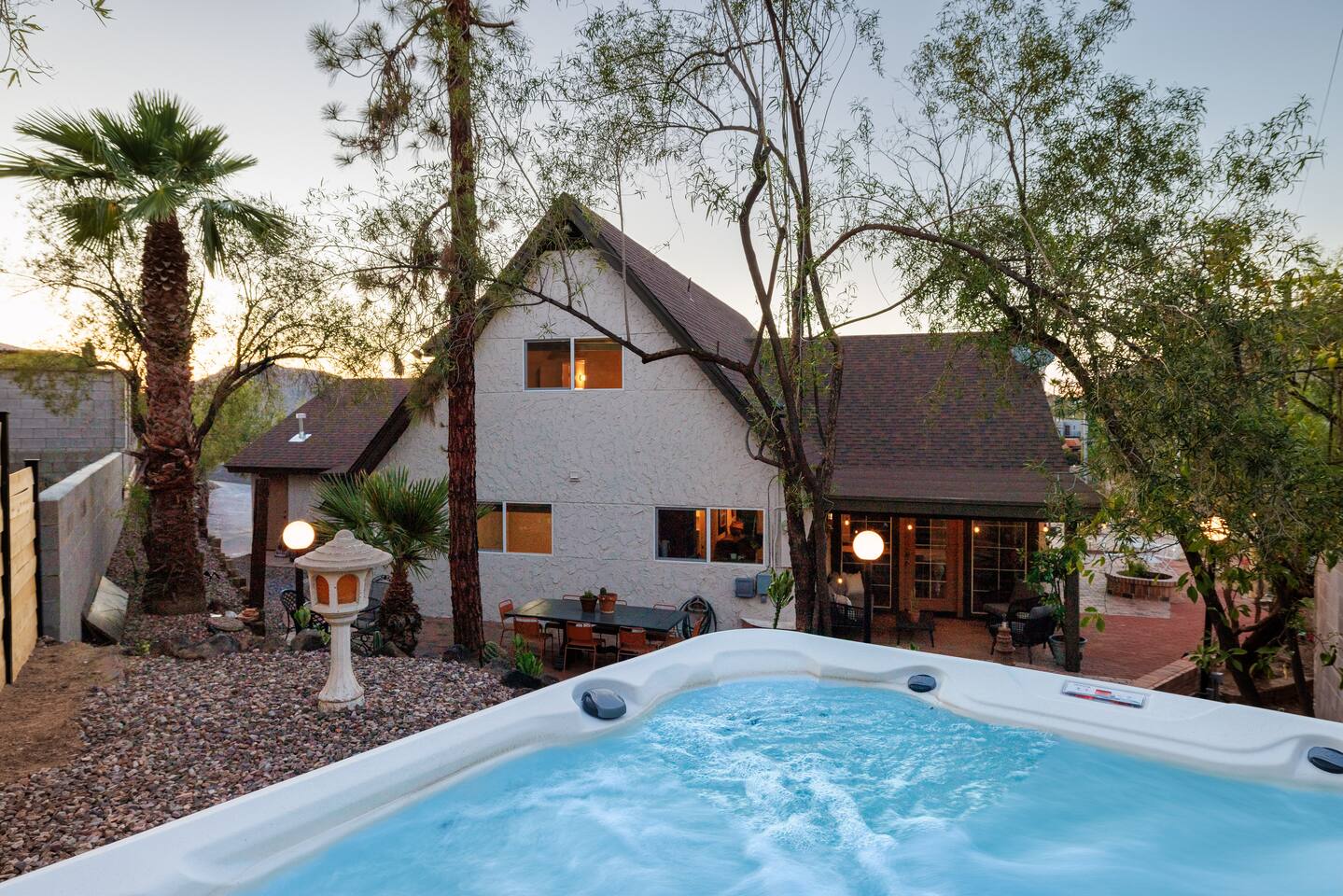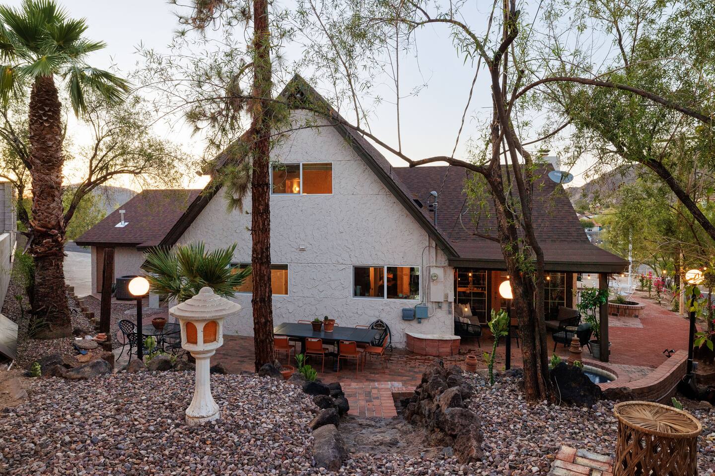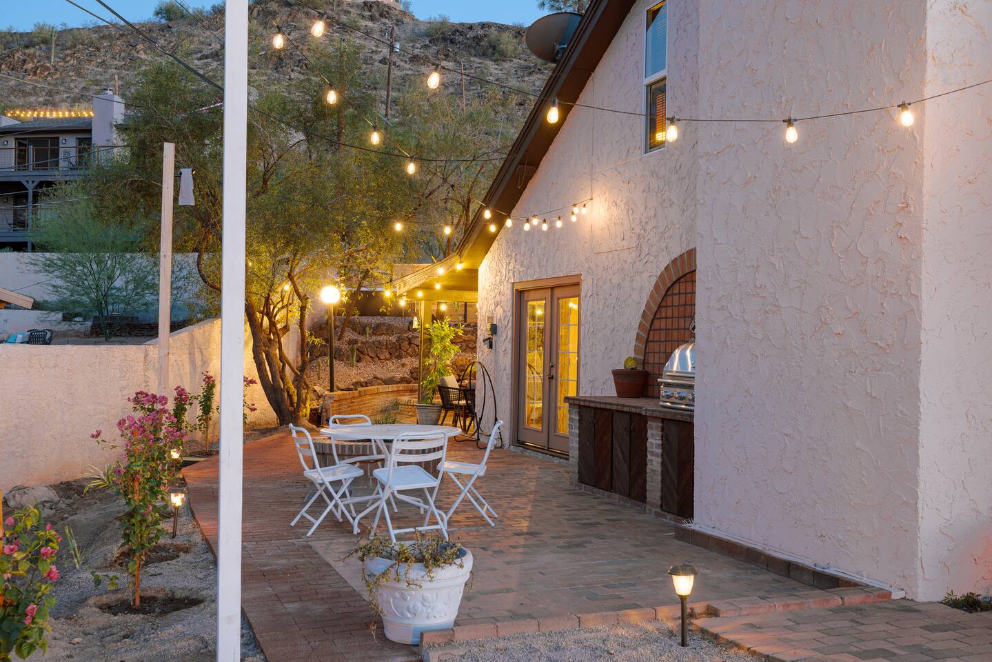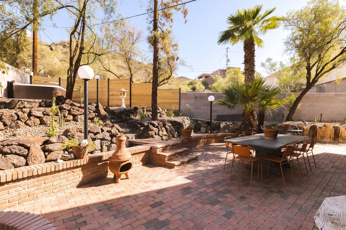 Welcome to Hiker’s Retreat! A one-of-a-kind home built right into the Phoenix Mountain Preserve. With trails just steps away, let our home be your trailhead to adventure. Relaxed, soulful, and unmistakably Arizona, this desert hideaway is full of character, from hand-laid tile art to warm wood details and cozy nooks. It’s a place to slow down, reconnect, and take in the magic of the desert mountains. 🌞 Outdoor Features: • Hot Tub perched at the very top of the backyard, offering sweeping views and the dreamiest sunsets. • Cold Plunge + Outdoor Shower - Perfect post hike reset! • Front-yard Fire pit with a view and plenty of seating • Built-In Outdoor Grill. Cook up a feast, then dine al fresco under the bistro lights • Private second story balcony off the primary bedroom ☕ Indoor Highlights: • Yoga Room with a private sauna. Your personal indoor retreat space! *Ask us for recommendations for in home yoga sessions or sound baths! • Library Nook. A cozy hideaway with vintage books, a plush loveseat, and a peekaboo window view • Coffee and beverage bar fully stocked and ready for your morning ritual • Well-Appointed Kitchen with original character and all the amenities and tools you need to prepare meals with loved ones • Comfy, Lounge ready Living Room with a Smart TV and hiking books to plan your adventure! 🛏️ Bedroom & Bathroom Layout: All bedrooms are equipped with a ceiling fan, closet with hangers, and a white noise machine. UPSTAIRS • Primary Suite: King bed, loft overlooking living room, private outdoor balcony, ensuite bathroom, table and chairs, dresser, library nook • Bedroom 2: Two queen beds, workspace, gorgeous view looking down at the backyard • Hallway guest bathroom DOWNSTAIRS • Bedroom 3: King bed, workspace • Bedroom 4: King bed, workspace • Hallway guest bathroom • Yoga room/sunroom with sauna and bathroom PETS • We allow up to two dogs per stay, with a pet fee of $90 per dog. We’re not able to accommodate cats at this time. • If you’re bringing a dog, please note that the backyard is not fenced, and javelinas are frequently seen in the neighborhood. For their safety, dogs should always be kept on a leash when outside. • We also ask that pets stay off the furniture during your stay. 📍 Why We Love Our Location: What makes it truly special? The views. Perched on the Phoenix Mountain Preserve, you’ll catch desert beauty in every direction. And while it feels tucked away, you’re still just minutes from central Phoenix- close to great restaurants, shopping, and even more trails to explore. • Walking distance to hiking trails • 4 minutes to Let It Roll Bowl & Entertainment Center • 5 minutes to HonorHealth John C. Lincoln Medical Center • 6 minutes to OHSO Restaurant & Brewery located on the Arizona Grand canal • 7 minutes to North Mountain Visitor's center • 8 minutes to Dreamy Draw Recreation area • 8 minutes to River Ranch Water park • 15 minutes to Phoenix Sky Harbor Airport • 20 minutes to Downtown Phoenix 🧼 Our home is professionally serviced by Well & Good, with all linens freshly laundered and sanitized for each stay. HOUSE RULES 1. Absolutely No Parties. We’re committed to being respectful neighbors. If there are any reports of parties or noise disturbances, you will be asked to leave immediately without a refund. 2. No Smoking. Smoking of any kind is not permitted inside the home. If evidence of smoking is found, a minimum $500 fee will be charged, plus the full cost of returning the home to its original smoke-free condition. 3. Backyard Safety: Our backyard is not fenced and sits directly against the Phoenix Mountain Preserve. Please use extra caution with children and be mindful of local wildlife. Phoenix License #STR-2025-002776