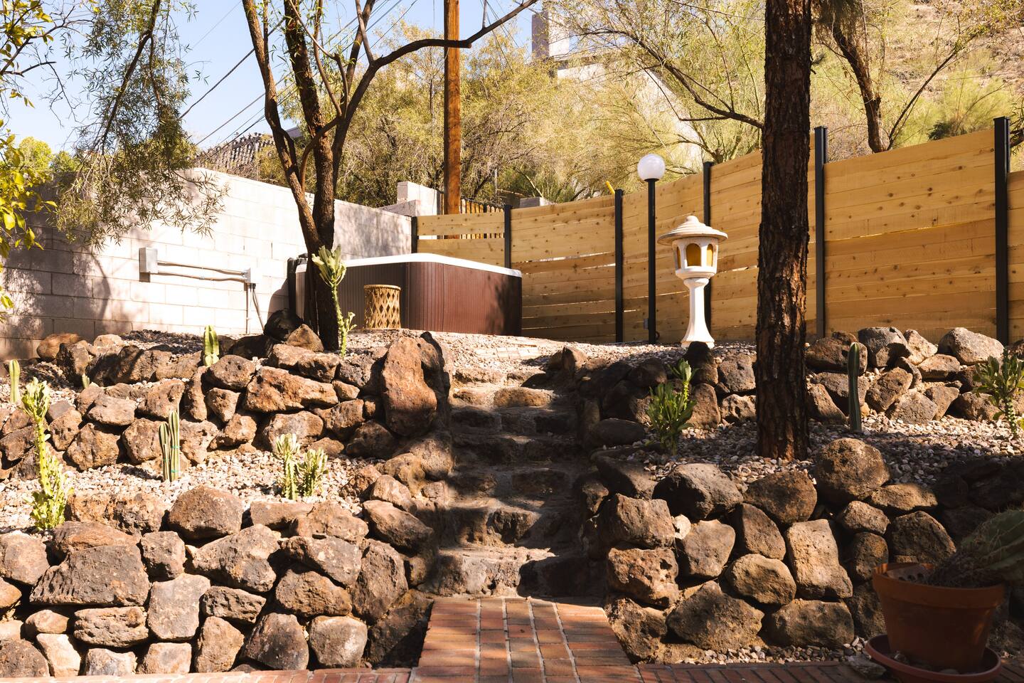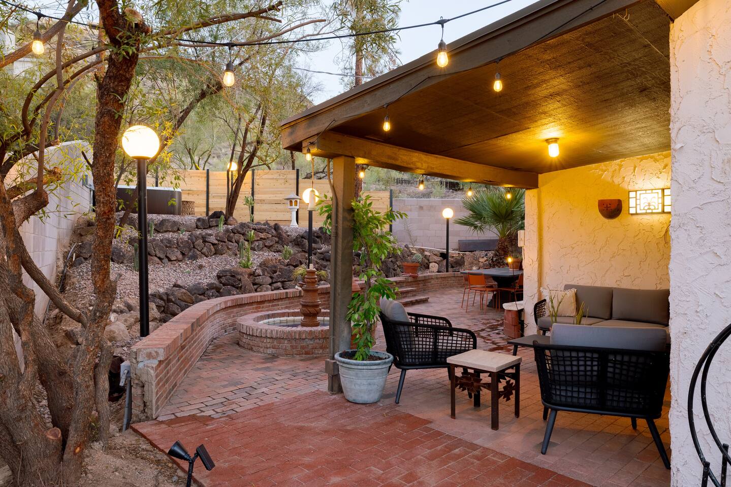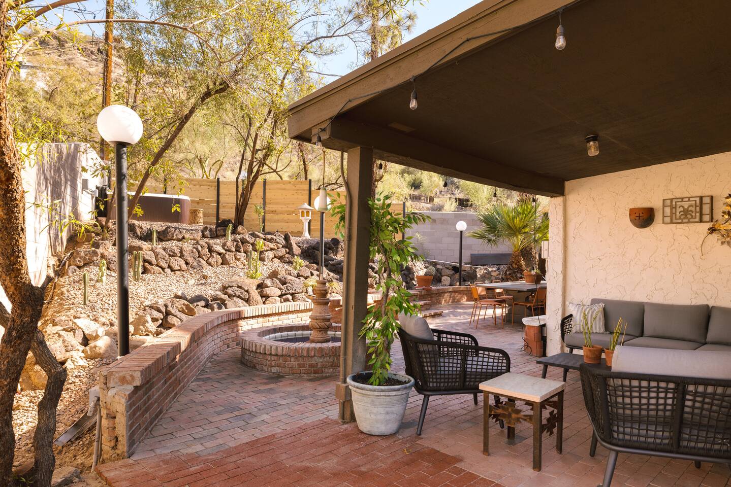 Welcome to Hiker’s Retreat! A one-of-a-kind home built right into the Phoenix Mountain Preserve. With trails just steps away, let our home be your trailhead to adventure. Relaxed, soulful, and unmistakably Arizona, this desert hideaway is full of character, from hand-laid tile art to warm wood details and cozy nooks. It’s a place to slow down, reconnect, and take in the magic of the desert mountains. 🌞 Outdoor Features: • Hot Tub perched at the very top of the backyard, offering sweeping views and the dreamiest sunsets. • Cold Plunge + Outdoor Shower - Perfect post hike reset! • Front-yard Fire pit with a view and plenty of seating • Built-In Outdoor Grill. Cook up a feast, then dine al fresco under the bistro lights • Private second story balcony off the primary bedroom ☕ Indoor Highlights: • Yoga Room with a private sauna. Your personal indoor retreat space! *Ask us for recommendations for in home yoga sessions or sound baths! • Library Nook. A cozy hideaway with vintage books, a plush loveseat, and a peekaboo window view • Coffee and beverage bar fully stocked and ready for your morning ritual • Well-Appointed Kitchen with original character and all the amenities and tools you need to prepare meals with loved ones • Comfy, Lounge ready Living Room with a Smart TV and hiking books to plan your adventure! 🛏️ Bedroom & Bathroom Layout: All bedrooms are equipped with a ceiling fan, closet with hangers, and a white noise machine. UPSTAIRS • Primary Suite: King bed, loft overlooking living room, private outdoor balcony, ensuite bathroom, table and chairs, dresser, library nook • Bedroom 2: Two queen beds, workspace, gorgeous view looking down at the backyard • Hallway guest bathroom DOWNSTAIRS • Bedroom 3: King bed, workspace • Bedroom 4: King bed, workspace • Hallway guest bathroom • Yoga room/sunroom with sauna and bathroom PETS • We allow up to two dogs per stay, with a pet fee of $90 per dog. We’re not able to accommodate cats at this time. • If you’re bringing a dog, please note that the backyard is not fenced, and javelinas are frequently seen in the neighborhood. For their safety, dogs should always be kept on a leash when outside. • We also ask that pets stay off the furniture during your stay. 📍 Why We Love Our Location: What makes it truly special? The views. Perched on the Phoenix Mountain Preserve, you’ll catch desert beauty in every direction. And while it feels tucked away, you’re still just minutes from central Phoenix- close to great restaurants, shopping, and even more trails to explore. • Walking distance to hiking trails • 4 minutes to Let It Roll Bowl & Entertainment Center • 5 minutes to HonorHealth John C. Lincoln Medical Center • 6 minutes to OHSO Restaurant & Brewery located on the Arizona Grand canal • 7 minutes to North Mountain Visitor's center • 8 minutes to Dreamy Draw Recreation area • 8 minutes to River Ranch Water park • 15 minutes to Phoenix Sky Harbor Airport • 20 minutes to Downtown Phoenix 🧼 Our home is professionally serviced by Well & Good, with all linens freshly laundered and sanitized for each stay. HOUSE RULES 1. Absolutely No Parties. We’re committed to being respectful neighbors. If there are any reports of parties or noise disturbances, you will be asked to leave immediately without a refund. 2. No Smoking. Smoking of any kind is not permitted inside the home. If evidence of smoking is found, a minimum $500 fee will be charged, plus the full cost of returning the home to its original smoke-free condition. 3. Backyard Safety: Our backyard is not fenced and sits directly against the Phoenix Mountain Preserve. Please use extra caution with children and be mindful of local wildlife. Phoenix License #STR-2025-002776