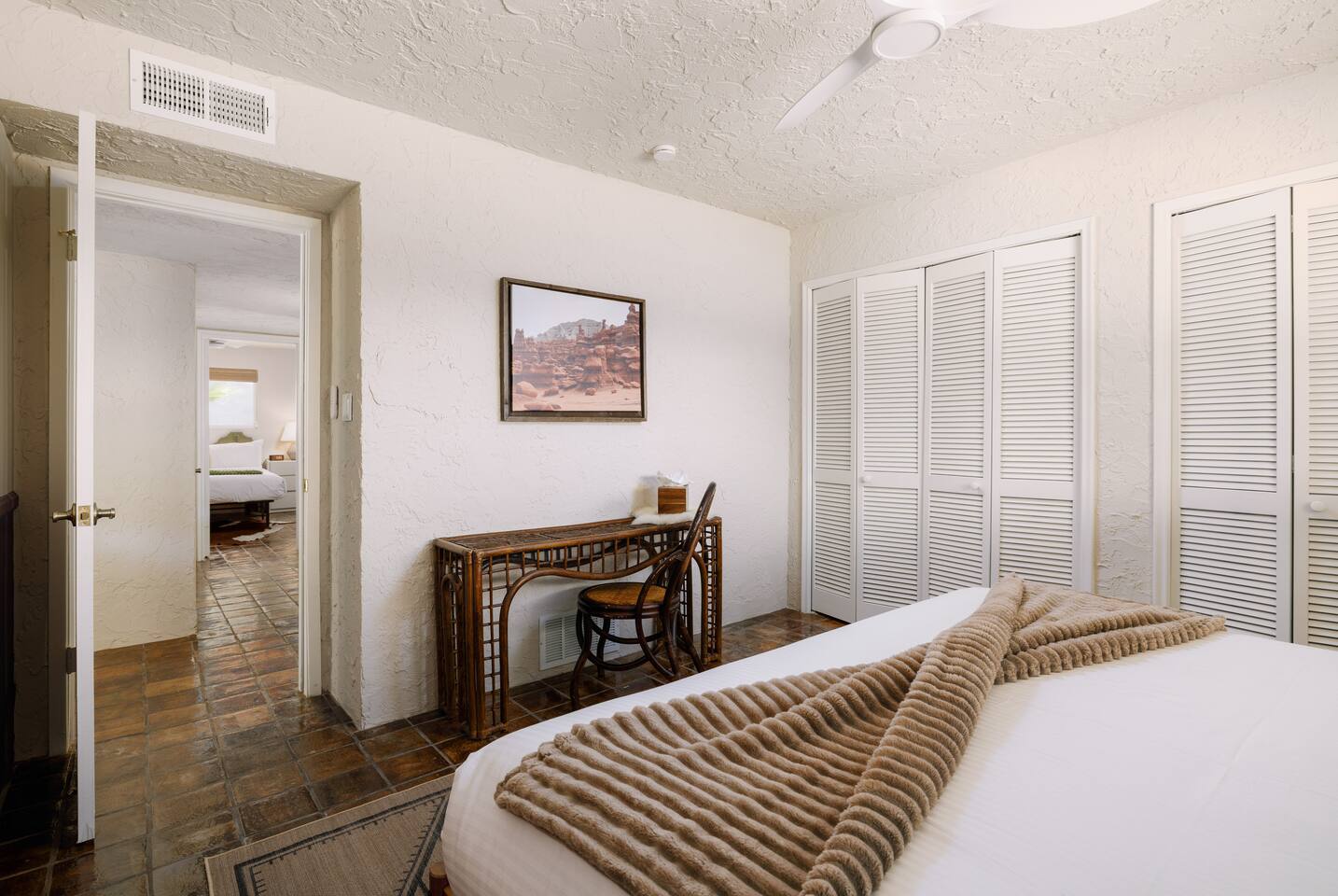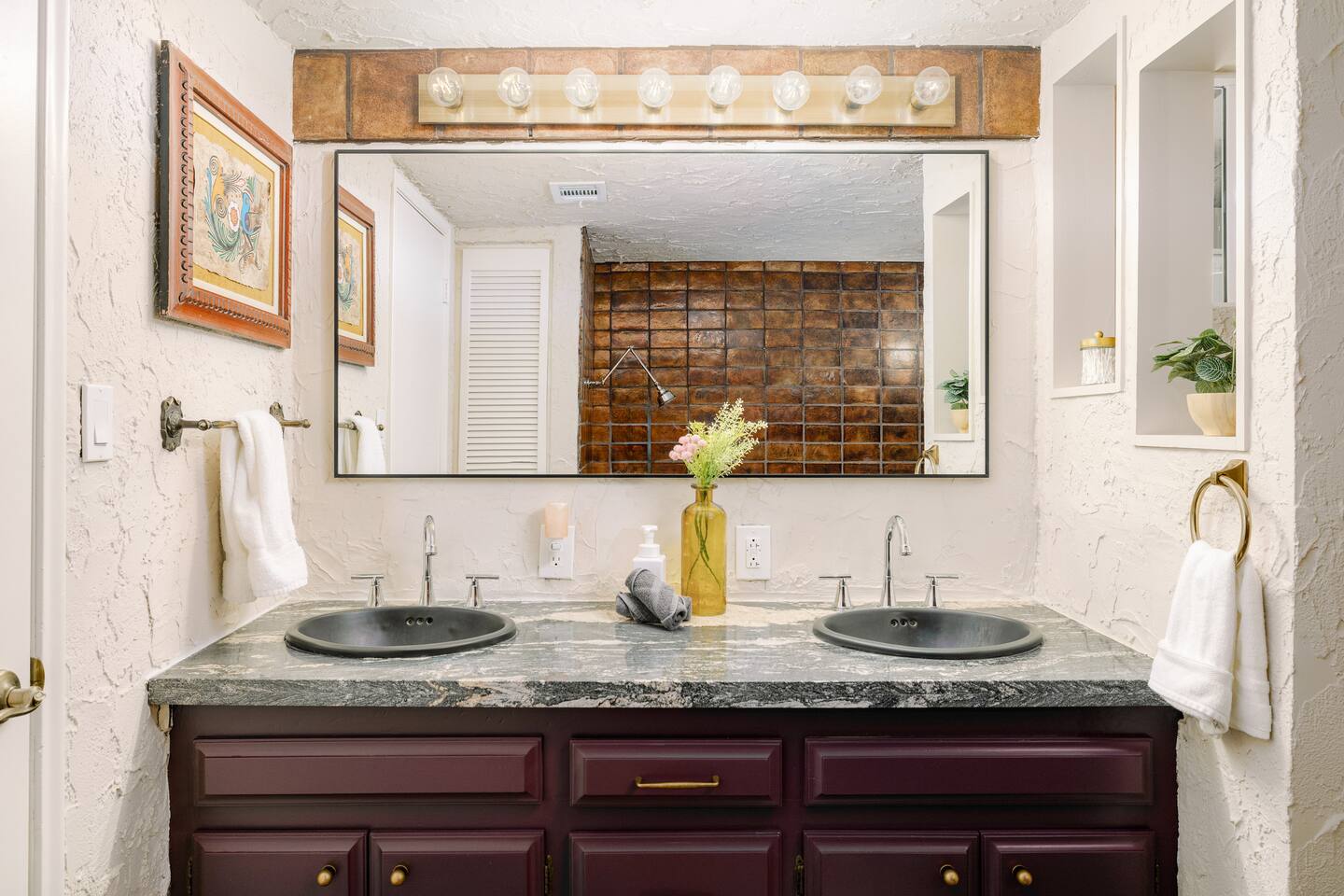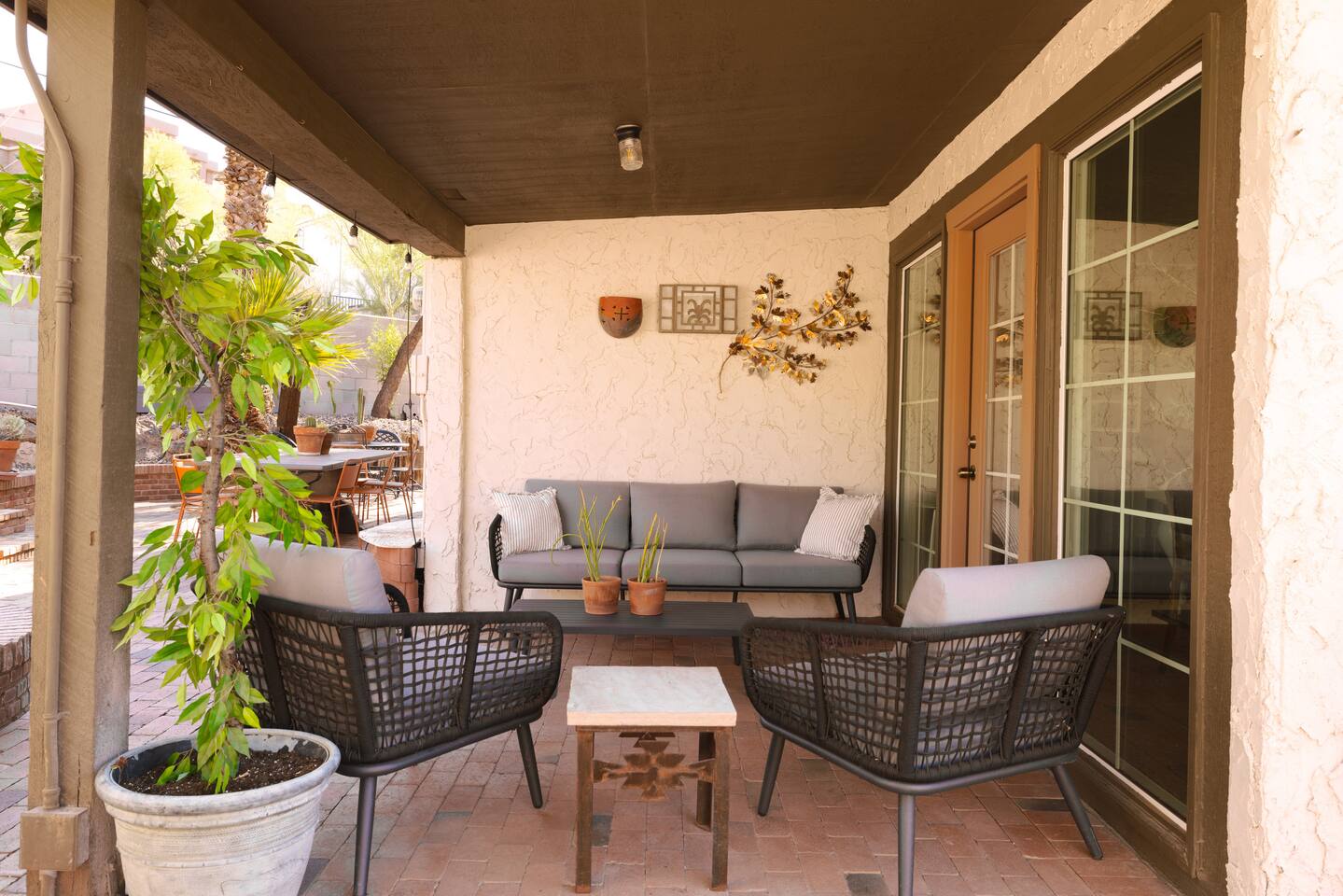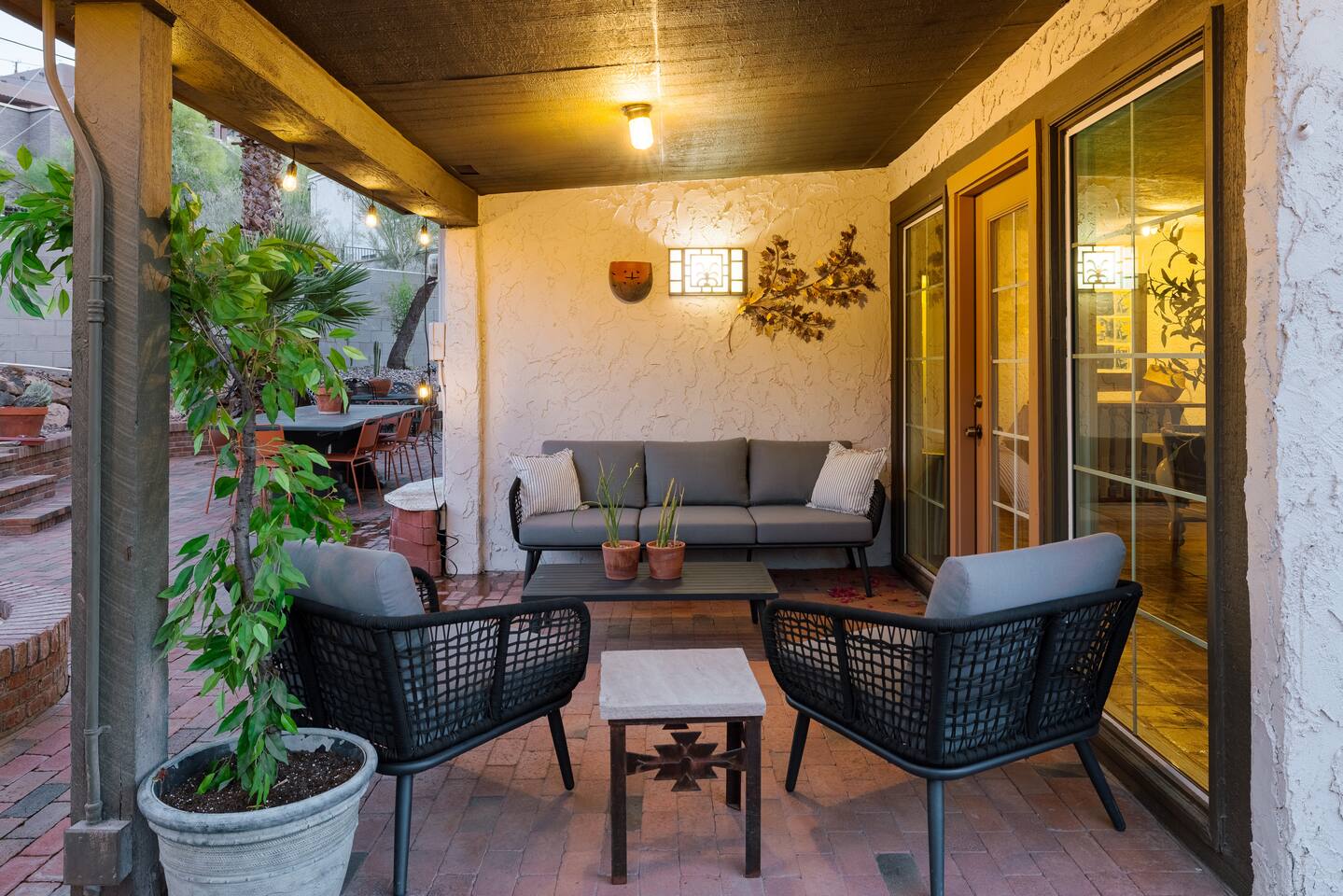 Welcome to Hiker’s Retreat! A one-of-a-kind home built right into the Phoenix Mountain Preserve. With trails just steps away, let our home be your trailhead to adventure. Relaxed, soulful, and unmistakably Arizona, this desert hideaway is full of character, from hand-laid tile art to warm wood details and cozy nooks. It’s a place to slow down, reconnect, and take in the magic of the desert mountains. 🌞 Outdoor Features: • Hot Tub perched at the very top of the backyard, offering sweeping views and the dreamiest sunsets. • Cold Plunge + Outdoor Shower - Perfect post hike reset! • Front-yard Fire pit with a view and plenty of seating • Built-In Outdoor Grill. Cook up a feast, then dine al fresco under the bistro lights • Private second story balcony off the primary bedroom ☕ Indoor Highlights: • Yoga Room with a private sauna. Your personal indoor retreat space! *Ask us for recommendations for in home yoga sessions or sound baths! • Library Nook. A cozy hideaway with vintage books, a plush loveseat, and a peekaboo window view • Coffee and beverage bar fully stocked and ready for your morning ritual • Well-Appointed Kitchen with original character and all the amenities and tools you need to prepare meals with loved ones • Comfy, Lounge ready Living Room with a Smart TV and hiking books to plan your adventure! 🛏️ Bedroom & Bathroom Layout: All bedrooms are equipped with a ceiling fan, closet with hangers, and a white noise machine. UPSTAIRS • Primary Suite: King bed, loft overlooking living room, private outdoor balcony, ensuite bathroom, table and chairs, dresser, library nook • Bedroom 2: Two queen beds, workspace, gorgeous view looking down at the backyard • Hallway guest bathroom DOWNSTAIRS • Bedroom 3: King bed, workspace • Bedroom 4: King bed, workspace • Hallway guest bathroom • Yoga room/sunroom with sauna and bathroom PETS • We allow up to two dogs per stay, with a pet fee of $90 per dog. We’re not able to accommodate cats at this time. • If you’re bringing a dog, please note that the backyard is not fenced, and javelinas are frequently seen in the neighborhood. For their safety, dogs should always be kept on a leash when outside. • We also ask that pets stay off the furniture during your stay. 📍 Why We Love Our Location: What makes it truly special? The views. Perched on the Phoenix Mountain Preserve, you’ll catch desert beauty in every direction. And while it feels tucked away, you’re still just minutes from central Phoenix- close to great restaurants, shopping, and even more trails to explore. • Walking distance to hiking trails • 4 minutes to Let It Roll Bowl & Entertainment Center • 5 minutes to HonorHealth John C. Lincoln Medical Center • 6 minutes to OHSO Restaurant & Brewery located on the Arizona Grand canal • 7 minutes to North Mountain Visitor's center • 8 minutes to Dreamy Draw Recreation area • 8 minutes to River Ranch Water park • 15 minutes to Phoenix Sky Harbor Airport • 20 minutes to Downtown Phoenix 🧼 Our home is professionally serviced by Well & Good, with all linens freshly laundered and sanitized for each stay. HOUSE RULES 1. Absolutely No Parties. We’re committed to being respectful neighbors. If there are any reports of parties or noise disturbances, you will be asked to leave immediately without a refund. 2. No Smoking. Smoking of any kind is not permitted inside the home. If evidence of smoking is found, a minimum $500 fee will be charged, plus the full cost of returning the home to its original smoke-free condition. 3. Backyard Safety: Our backyard is not fenced and sits directly against the Phoenix Mountain Preserve. Please use extra caution with children and be mindful of local wildlife. Phoenix License #STR-2025-002776