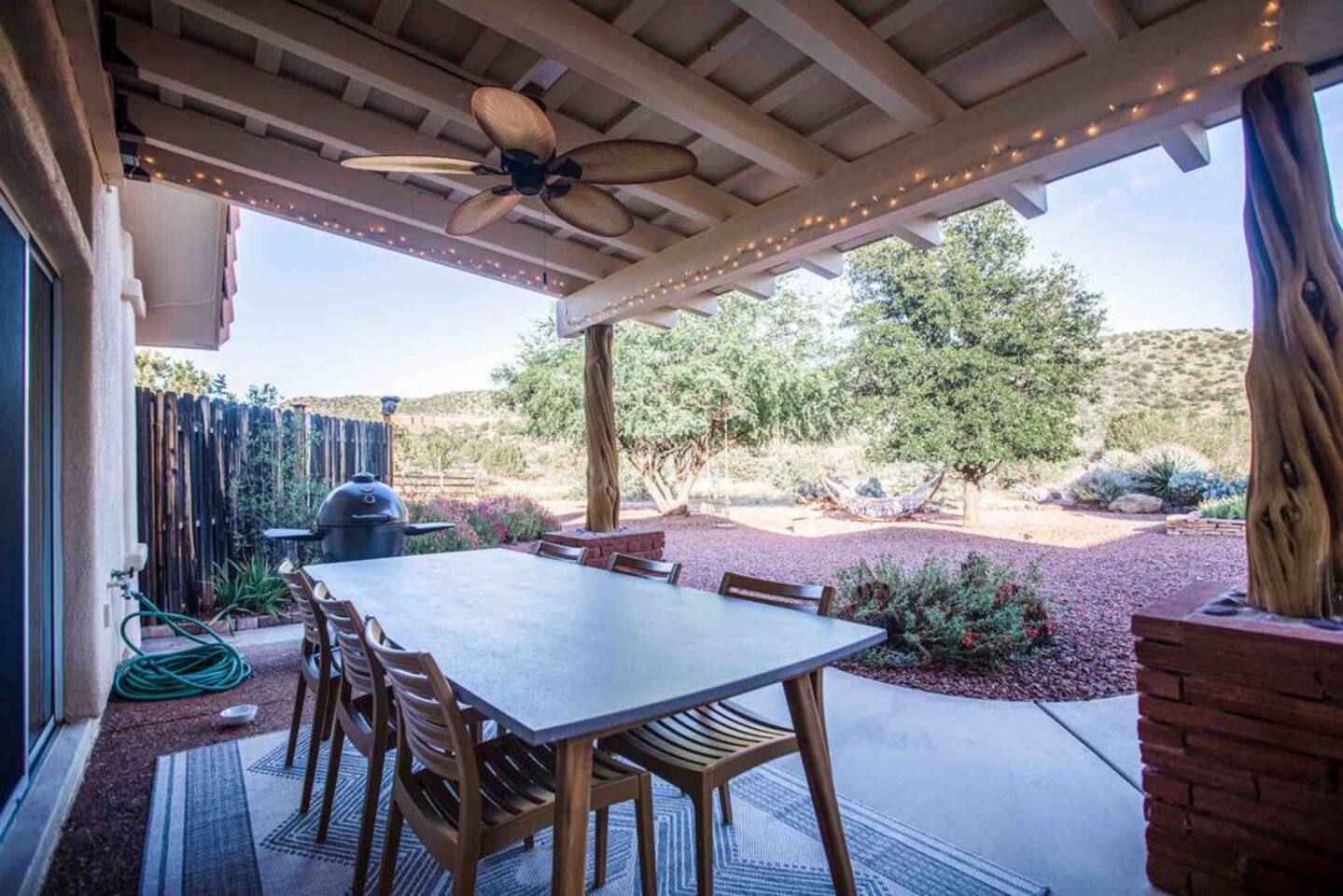 Welcome to Hummingbird Crossing! Thoughtfully named after our frequent visitor, the hummingbird. Symbolic of joy! Which also represents the feeling that many guests describe when they enter our home. A recent guest lovingly called it a "Happy Home" which is perfectly fitting. A true retreat designed to experience serenity whether it be from our outdoor hammock, private master bedroom patio, or plush sofa. Enjoy a dedicated workspace with fast & reliable Starlink Wifi. Discover backyard hiking trails perfect for sunset strolls, mountain biking, and stargazing. We invite you to rest and receive. Discover the message this land holds for you. Our FAVORITE FEATURES of Hummingbird Crossing: - Panoramic views surround our dining table and living room. Soak in the landscape from the comfort of our air conditioned home! - Brand new hot tub, added in July of 2024. - Elegantly landscaped with honeysuckle vines, roses, sage plants, ash trees, and cacti. - Natural light permeates every bedroom and bathroom. - Split floor plan allows for ample privacy. - Waking up early in the morning to see hot air balloons overhead. (Check out Northern Lights Balloon Expedition for balloon rides that take off and land near us on National Forest land) - Starlink Wifi Why we LOVE OUR LOCATION: - 10 SECONDS to hiking trails; on of our favorites passes through our backyard and is a quick walk to the top of a hill with views of Thunder Mountain and Cathedral Rock Vortex - Less than 0.5 miles to Oak Creek Homestead OHV trail - 5 minute drive to Local Juicery, Vino de Sedona and Famous Pizza & Beer - 7 minutes to Red Rock State Park - 10 minutes to Uptown Sedona - Freedom to enjoy quick access to hiking trails while avoiding the traffic common in Uptown Sedona. - Incredible stargazing and quiet solitude due to our remote Sedona location on 1.5 acres of land - Only 15 minutes away from Arizona's best wineries in Cornville & Paige Springs (ask us for recommendations!) Designed so that you can enjoy the beauty of the land from inside and out. Large windows provide ample views of red rocks. Our back patio offers plenty of room for enjoying time as a group or solo. Let the wind chimes serenade you while you doze off in the hammock, or enjoy time as a family over our full size outdoor dining table and grill. Enjoy the very best of furniture and amenities: Living Room: - Article leather sectional sofa and coffee table - Smart TV with streaming and Disney+ - Custom wall art authentic to Sedona - Games: Scrabble, Jenga, Catchphrase, Sorry, Chess, Checkers Kitchen & Dining Room: - Article Dining table and chairs - Coffee station with options: Keuirg, drip, or pour over - Dishwasher, oven, stove, and microwave Outdoor patio: - Hammock - Tree swing - Grill - Outdoor dining table and seating for 8 - Bird bath & Hummingbird feeder - Charcoal grill (bring your own charcoal) Primary Bedroom: - King size Nectar mattress - Attached master bathroom with dual sinks, toilet room, tub and shower - Sliding glass doors to outdoor patio - Walk-in closet / playroom for kids with toys and a sleeping cot Bedroom 1: - Queen size Nectar mattress - Smart TV with streaming and Disney+ - Acoustic guitar - Private patio surrounded by mature trees Bedroom 2: - Queen size Nectar mattress - Dedicated workspace - Smart TV with streaming and Disney+ 5 minute drive to: - Local Juicery - SWHM Boutique - Crystal Magic - Layla's Cafe - Famous Pizza & Beer - & several hiking trails! 10 minute drive to: - Secret Slickrock Trailhead (access to Buddha Beach, Red Rock Crossing Vortex, and Cathedral Rock) - Oak Creek - Crescent Moon Ranch - Red Rock State Park - Cultural Park Trailhead - Airport Loop Vortex - Uptown Sedona - Whole Foods grocery - & several hiking trails! 20 minute drive to: - Oak Creek Canyon - Old Town Cottonwood - Wineries in Cornville and Paige Springs - Village of Oak Creek - & several more hiking trails! TPT: 21462208
