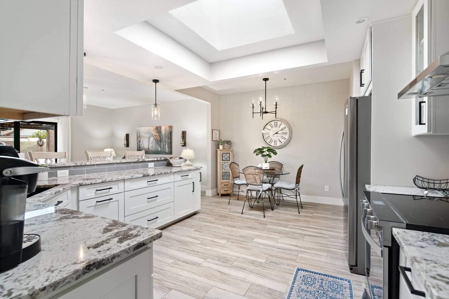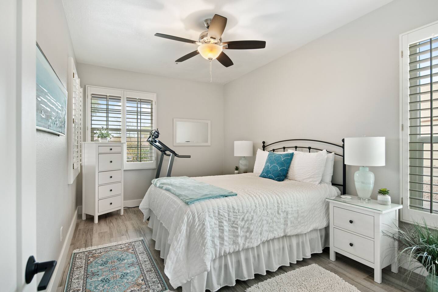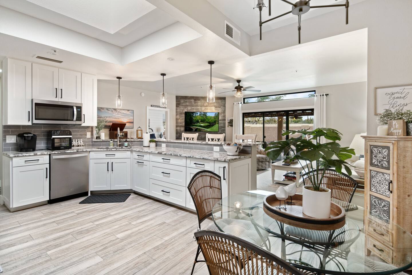 Enjoy the cozy charm of our desert home. Unique and prime location, walking distance to restaurants, and a short drive from top-tier golf clubs, restaurants, spas and shopping. Located only 5 minutes from Mayo Clinic, our home is a calming and convenient base for those traveling for medical care. Whether you’re undergoing treatment, supporting a loved one, or needing a peaceful place to recover, we’ve got you covered. Enjoy sunset strolls along the canal or nearby trails. The primary bedroom is furnished with a King size bed. The second bedroom is furnished with a Queen size bed. PLUS a third space that easily transforms into a cozy retreat. Indulge in well-equipped bathrooms, a fully stocked kitchen, and cherished amenities like a wood-burning fireplace. Unwind in a community that boasts a private pool and jacuzzi spa, making your stay in North Scottsdale unforgettable. Bedroom Layout: • Bedroom 1: King bed with en suite bathroom, TV • Bedroom 2: Queen bed, treadmill • Bedroom 3: This room serves as a foyer and can be easily transformed into a cozy third bedroom with a pull-out queen bed and curtain for privacy. (The layout of the home makes this space feel private, however, this space does NOT have a door and is not a true bedroom) • Living room: Wood burning fireplace, comfy sofa, Smart TV, reading chairs, sliding glass windows that empty out to the patio • Dining room & Kitchen: Dining table with seating for 4, breakfast bar with seating for 3, ample counter space, fully stocked kitchen • Patio: Gas fire pit, gas grill, seating for 6, grass turf • Laundry room: Full size washer and dryer *Please note: With notice, we are happy to prepare the pull out bed and make up the 3rd bedroom for you. Otherwise, sheets are easy to access and guests are welcome to make up the bedroom upon arrival.* Bathrooms: • En suite bathroom: Features a walk-in shower and free-standing bathtub • Hallway bathroom: Walk-in shower • Bathrooms are equipped with a hairdryer, towels, shampoo/conditioner, and body wash Favorite Home Amenities: • Well-Equipped Kitchen: Keurig, Ninja Bullet, Air Fryer, Crockpot, as well as all the essentials • Wood-burning fireplace • Big screen Smart TV • Full house water filter system • Board games • 2 car garage • Patio with gas grill and fire pit • Pack n Play & children's books *If you will need a Pack N Play crib for your stay, let us know ahead of time so that we can be sure this is ready for you. Community Amenities: • Private community pool and jacuzzi spa located across the street • Access to a walking trail along the Arizona Canal *The community pool is heated during the shoulder season and is typically warm enough to swim April-October. During the months of November-March, it is not heated and will likely be too cold to swim. The hot tub is heated year round. Within walking distance: • Dunkin Donuts • Black Rock Coffee • Over Easy Breakfast Restaurant • Albertsons Grocery Store • Vicinos Local Italian • Cold Beer and Cheeseburgers • Khao Thai and Sushi Bar • Rosati's Pizza Scottsdale • Spinato's Pizzeria • And more!! Distance to other notable landmarks: • 5 minutes to Talesin West • 5 minutes to Mayo Clinic (East campus) • 10 minutes to West World • 10 minutes to TPC Scottsdale Golf Club where the Waste Management Open is held in February • 15 minutes to Scottsdale Airport • 25 minutes to Phx Sky Harbor International Airport Important to know: This is our own home where we live for part of the year. You'll find it well-stocked with personal items, ensuring an authentic "home away from home" experience. We're excited to share our home with you, offering a unique blend of personal warmth and well-loved surroundings for an unforgettable North Scottsdale stay! Scottsdale City License #203099 TPT #21539218