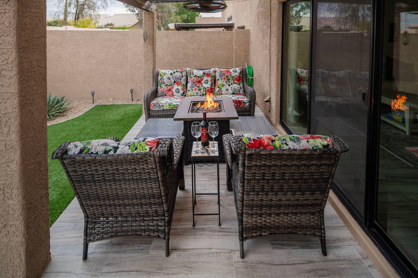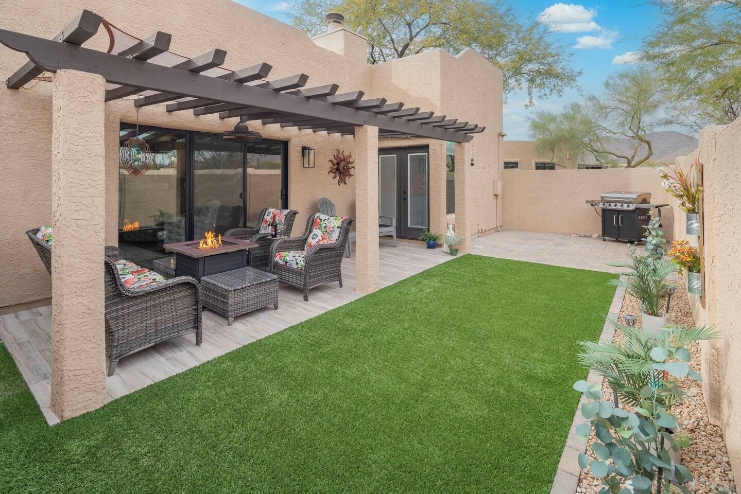 Welcome to your home away from home! - Relax on the private patio with fire pit, grill, and lush turf landscaping - Steps from Arizona Canal trails, perfect for peaceful walks and jogs - Quick 5-min drive to Mayo Clinic, ideal for treatment or recovery stays - Across the street from a quiet community pool and year-round hot tub - Book now for a restful, well-stocked Scottsdale escape with local charm